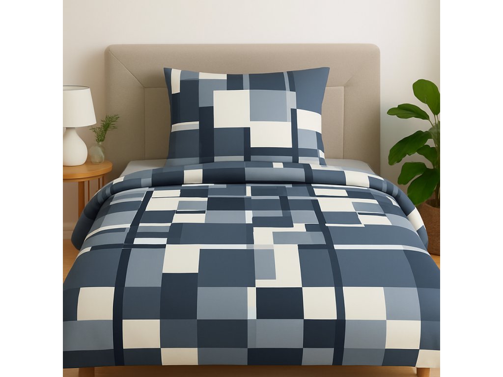 Bavlněné povlečení, jednolůžko - Šedobílá symetrie