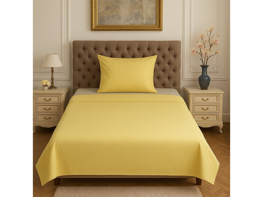 Bavlněné povlečení, jednolůžko - Žluté s travinou