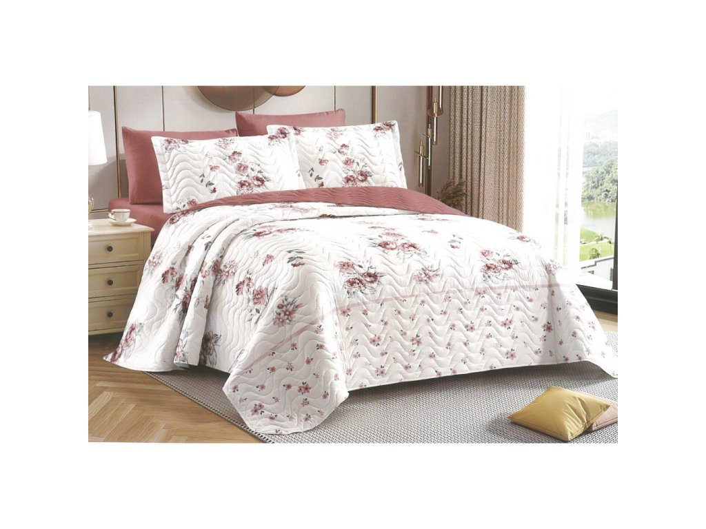 Bavlněný přehoz přes postel na dvojlůžko s 2 povlaky na polštáře - Květinové kouzlo