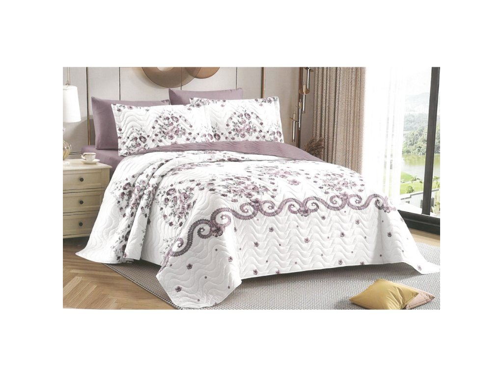 Bavlněný přehoz přes postel na dvojlůžko s 2 povlaky na polštáře - Růžový závoj
