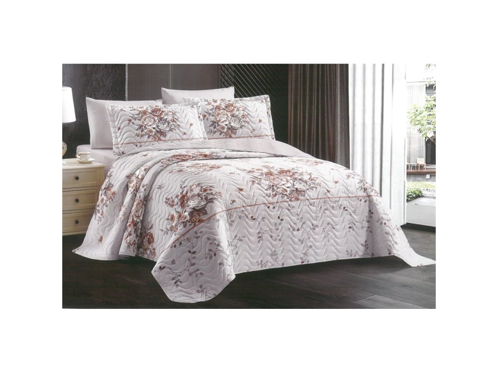 Bavlněný přehoz přes postel na jednolůžko s povlakem na polštář - Bílá růže