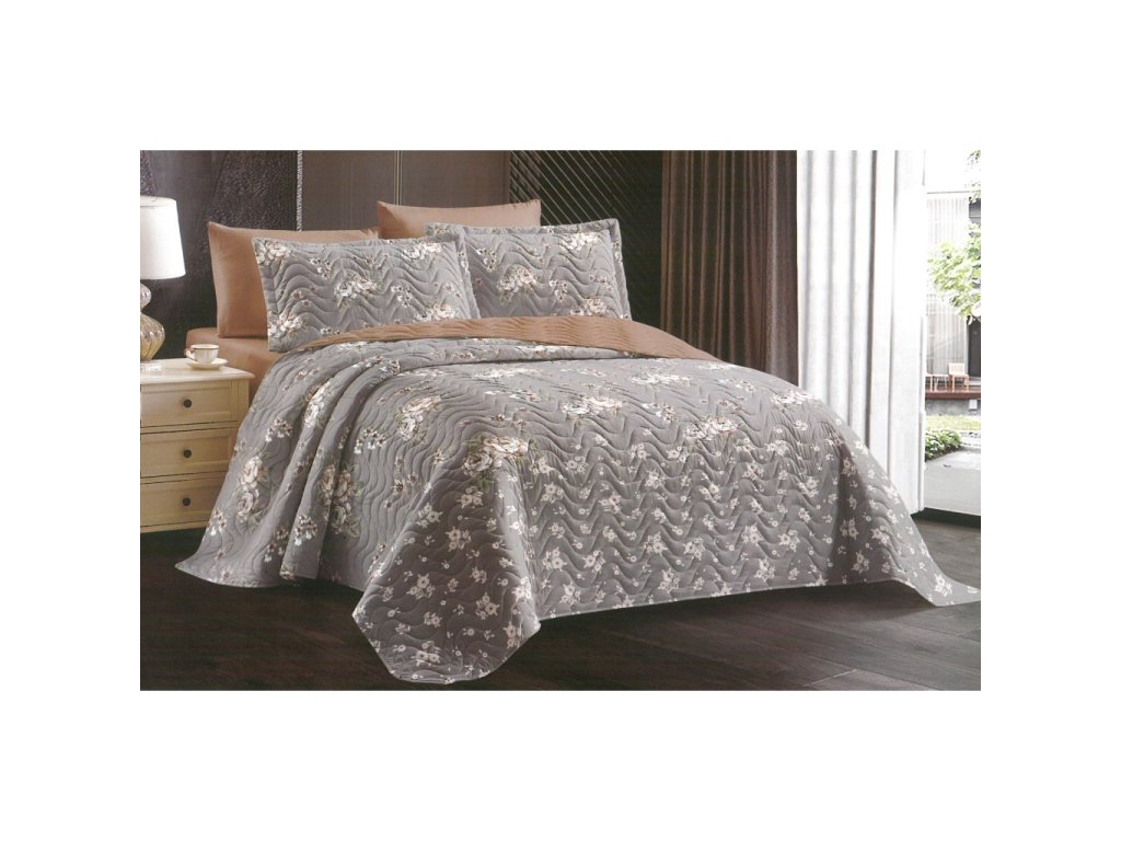 Bavlněný přehoz přes postel na jednolůžko s povlakem na polštář - Šedá zahrada