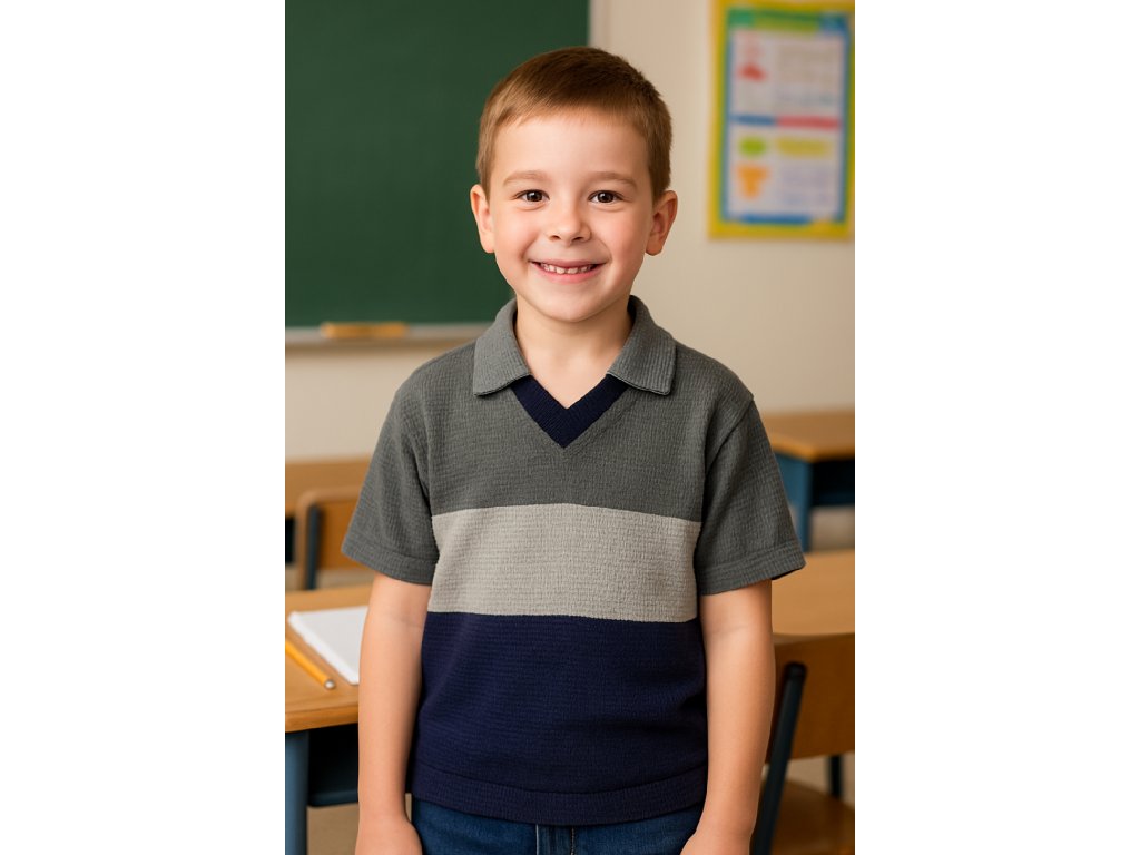 Lehké a příjemné tričko s krátkým rukávem a kontrastním límečkem. Díky kombinaci 45 % bavlny a 55 % polyesteru je materiál prodyšný, odolný a snadno se udržuje. Jemná struktura látky s drobným kostičkovým vzorem dodává tričku moderní vzhled.