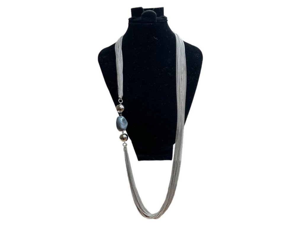 BAZAR-Metal Náhrdelník - Stříbrné řetízky s kamenem