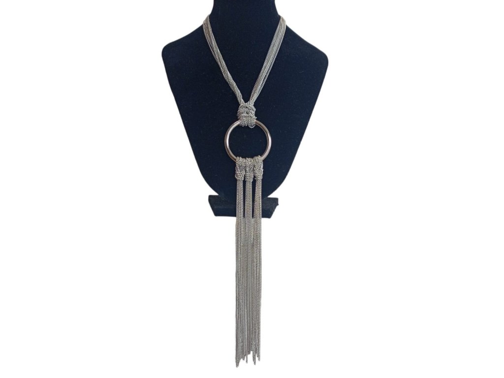 BAZAR-Metal Náhrdelník - Stříbrný kruh a řetízky