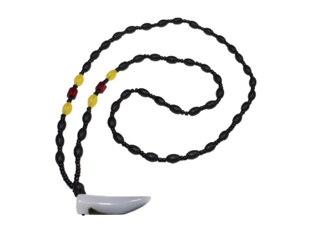 BAZAR-Náhrdelník se žlutými korálky a přívěskem ve tvaru zubu
