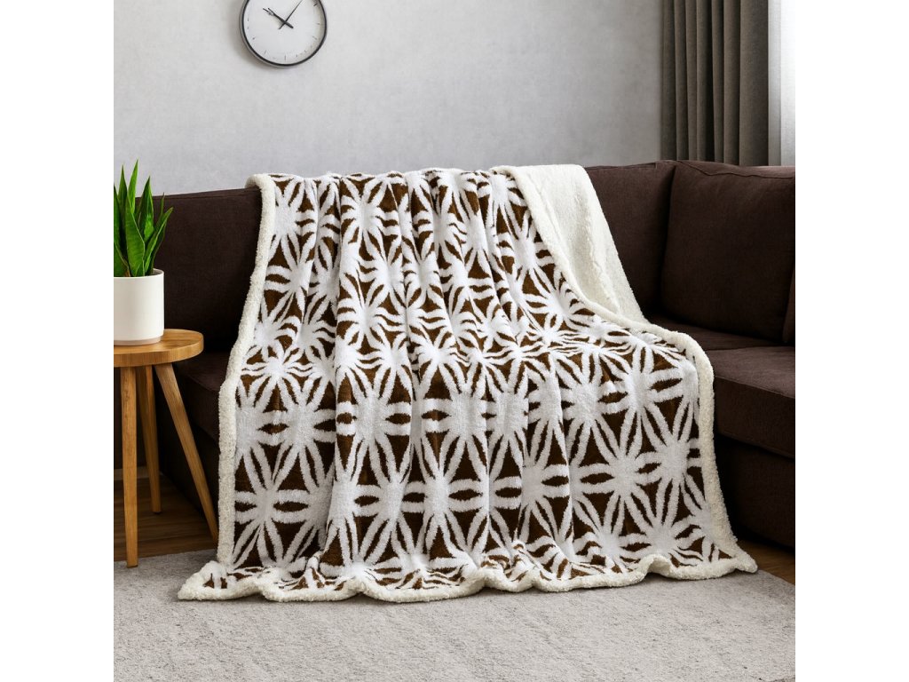 Beránková deka Květinka 200 x 230 cm - tmavě hnědá