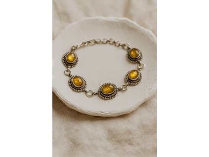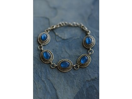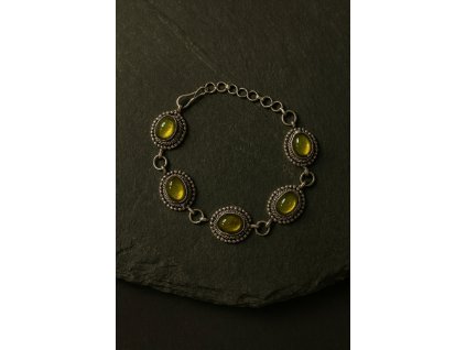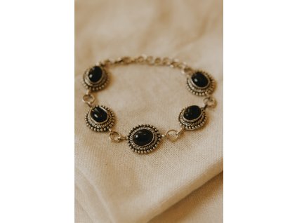 Elegantní náramek v retro stylu, který zaujme na první pohled. Pět oválných prvků s dekorativním sklíčkem, zasazených do detailně zdobených kovových rámečků ve stříbrném tónu....