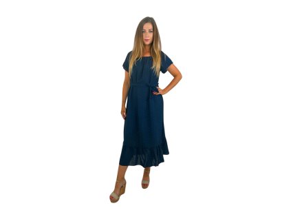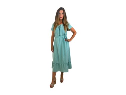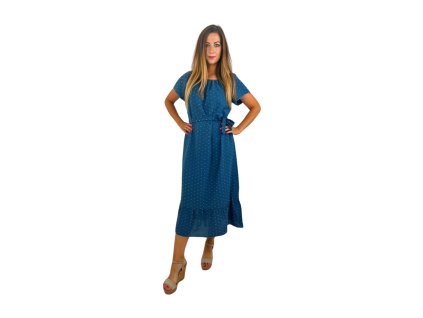 Dámské šaty s pružným žabičkováním s rozšířenou sukní. 18aty mají krátké rukávky. Šaty se dají nosit i se staženými rukávky a volnými rameny Pružné žabičkování pomáhá, aby...
