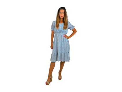 Dámské šaty s pružným žabičkováním s rozšířenou sukní. 12aty mají krátké rukávky. Šaty se dají nosit i se staženými rukávky a volnými rameny Pružné žabičkování pomáhá, aby...