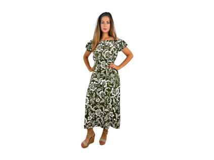 Dámské šaty s pružným žabičkováním s rozšířenou sukní. 8aty mají krátké rukávky. Šaty se dají nosit i se staženými rukávky a volnými rameny Pružné žabičkování pomáhá, aby...