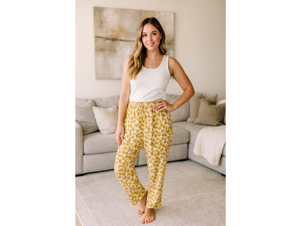 Dámské kalhoty s květinami krémové 56