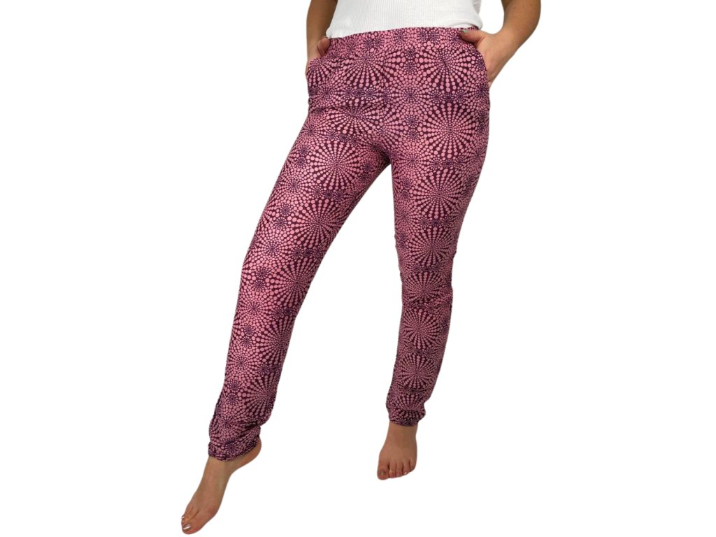 Kalhoty jsou vyrobeny ze 100% viskózy. Jsou velmi příjemné na nošení. Kalhoty mají univerzální velikost.