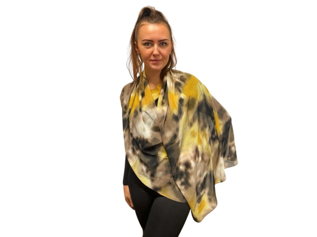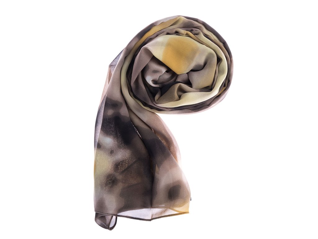 Dámský šátek 85 x 175 cm batika tmavě hnědý se žlutým