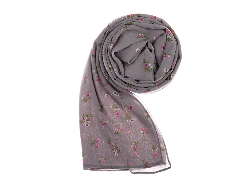Dámský šátek 85 x 175 cm květinky -tmavě šedý
