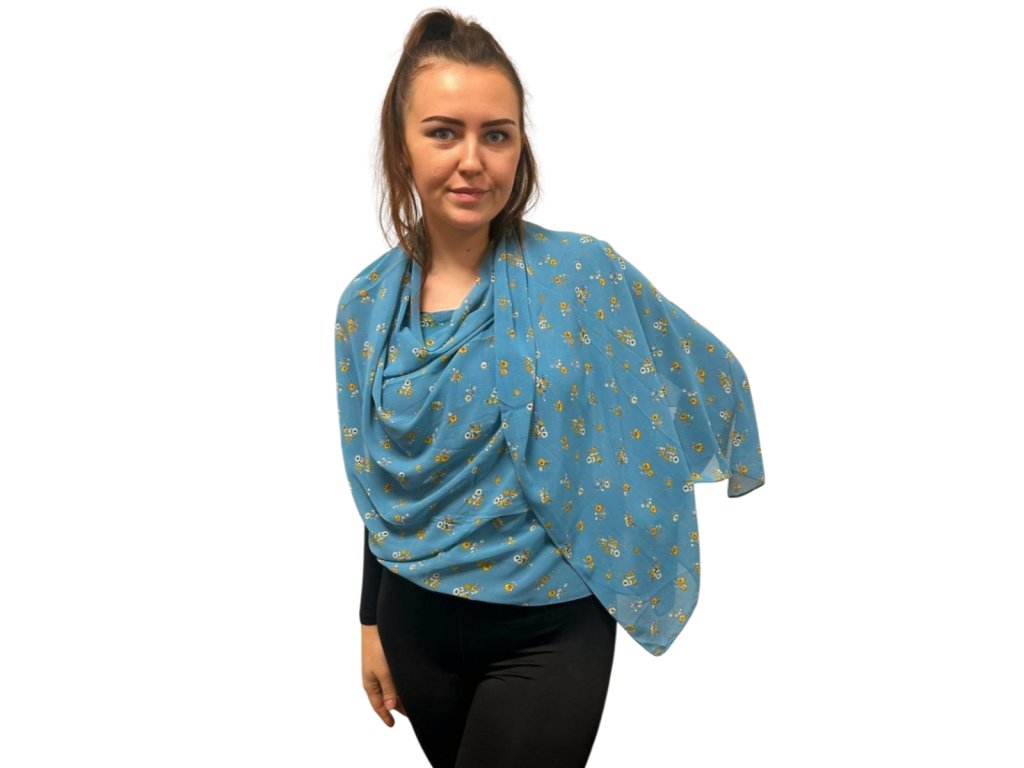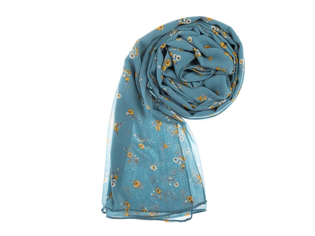 Dámský šátek 85 x 175 cm květinky -zelenomodrý