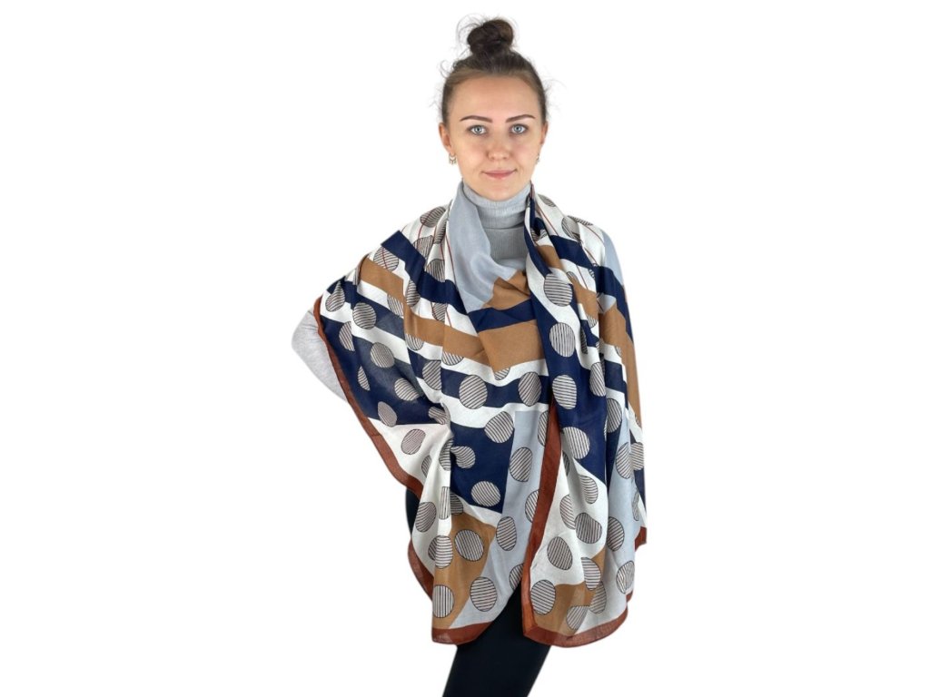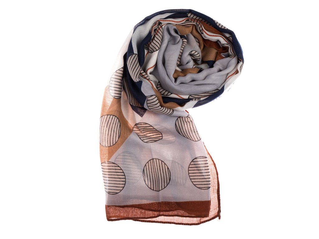 Dámský šátek 90 x 175 cm kolečka - béžový