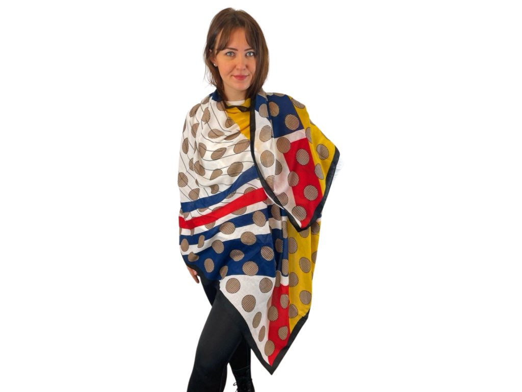 Dámský šátek 90 x 175 cm kolečka - červeno-žlutý