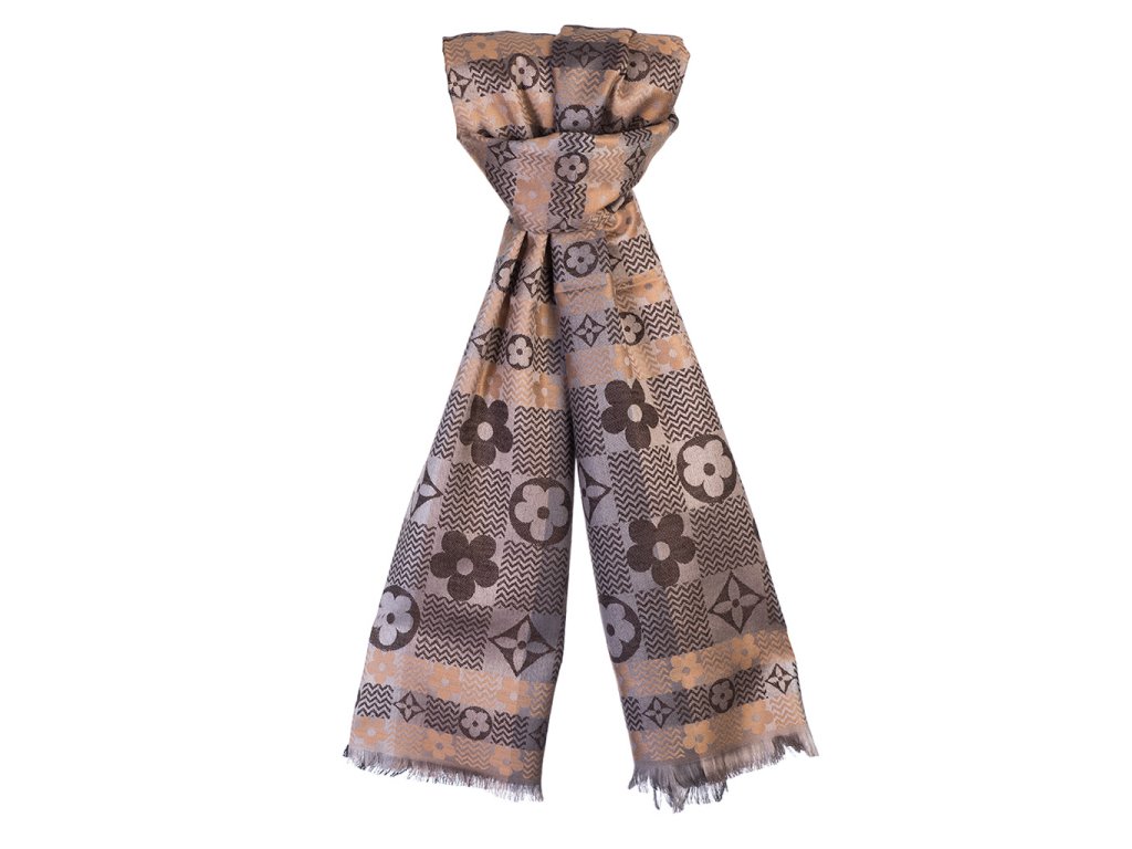 Dámský šátek 90 x 175 cm Květiny 23-12 - béžový