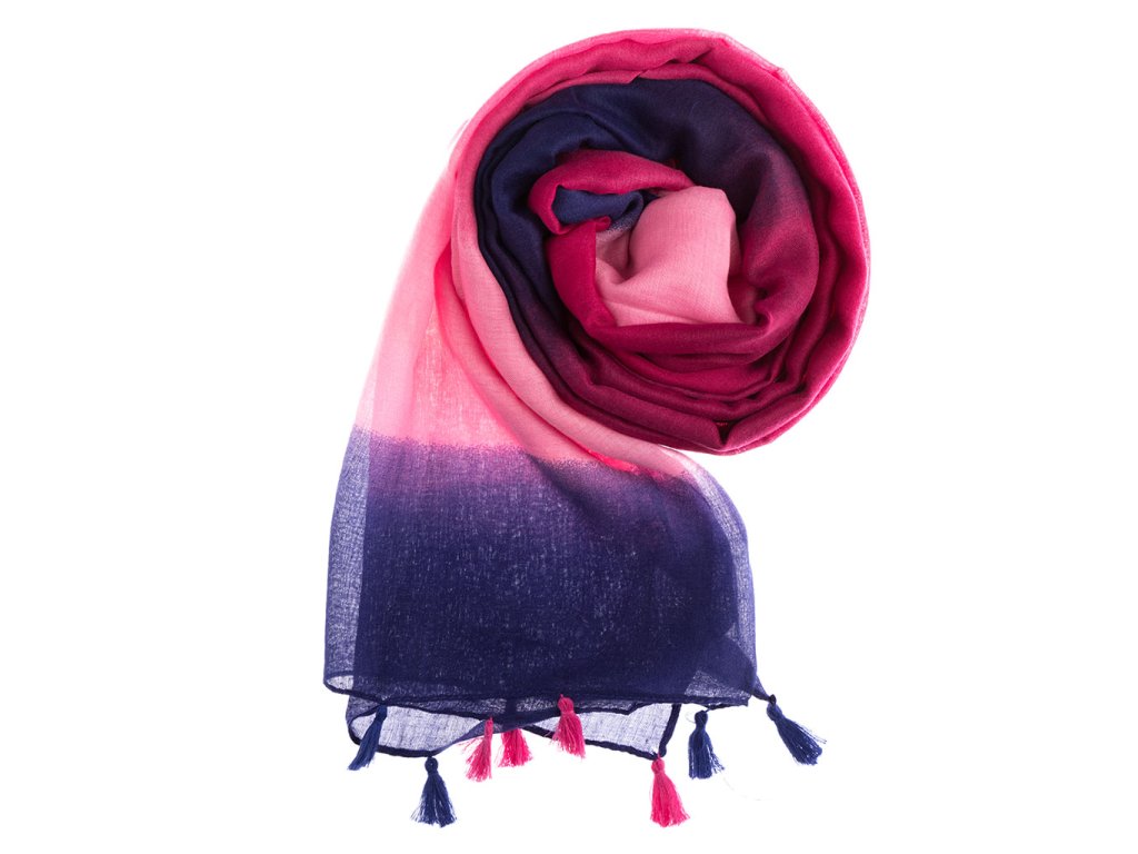 Dámský šátek 90 x 200 cm Barevné pruhy- modrorůžový
