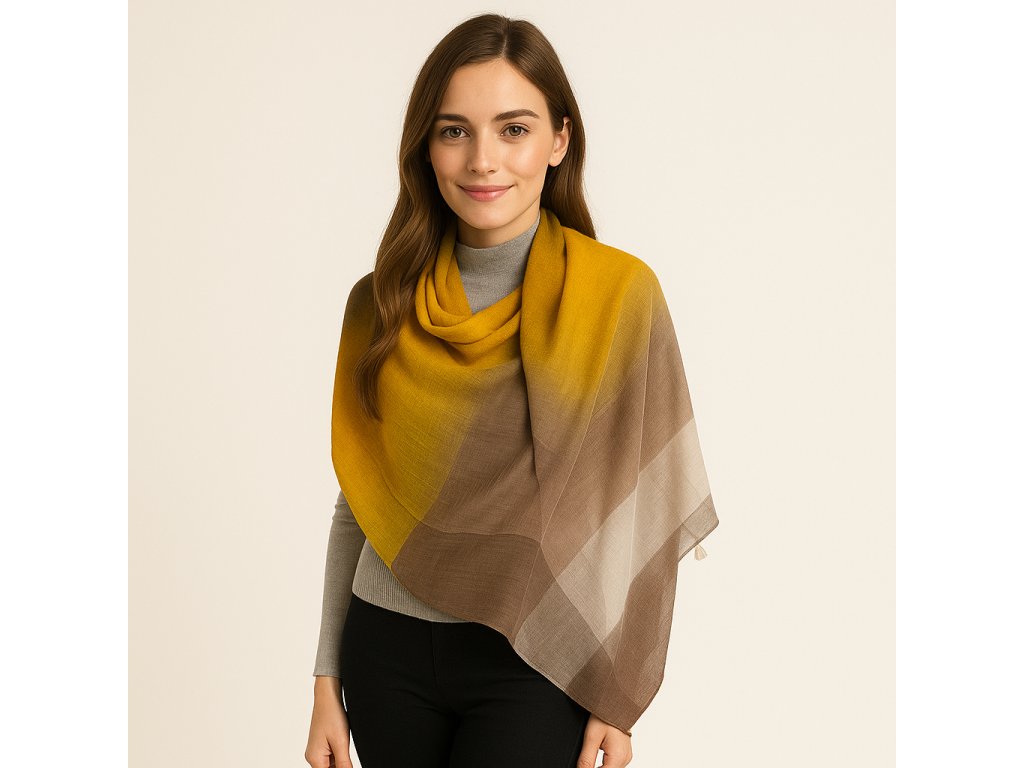 Dámský šátek 90 x 200 cm Barevné pruhy- Okrová
