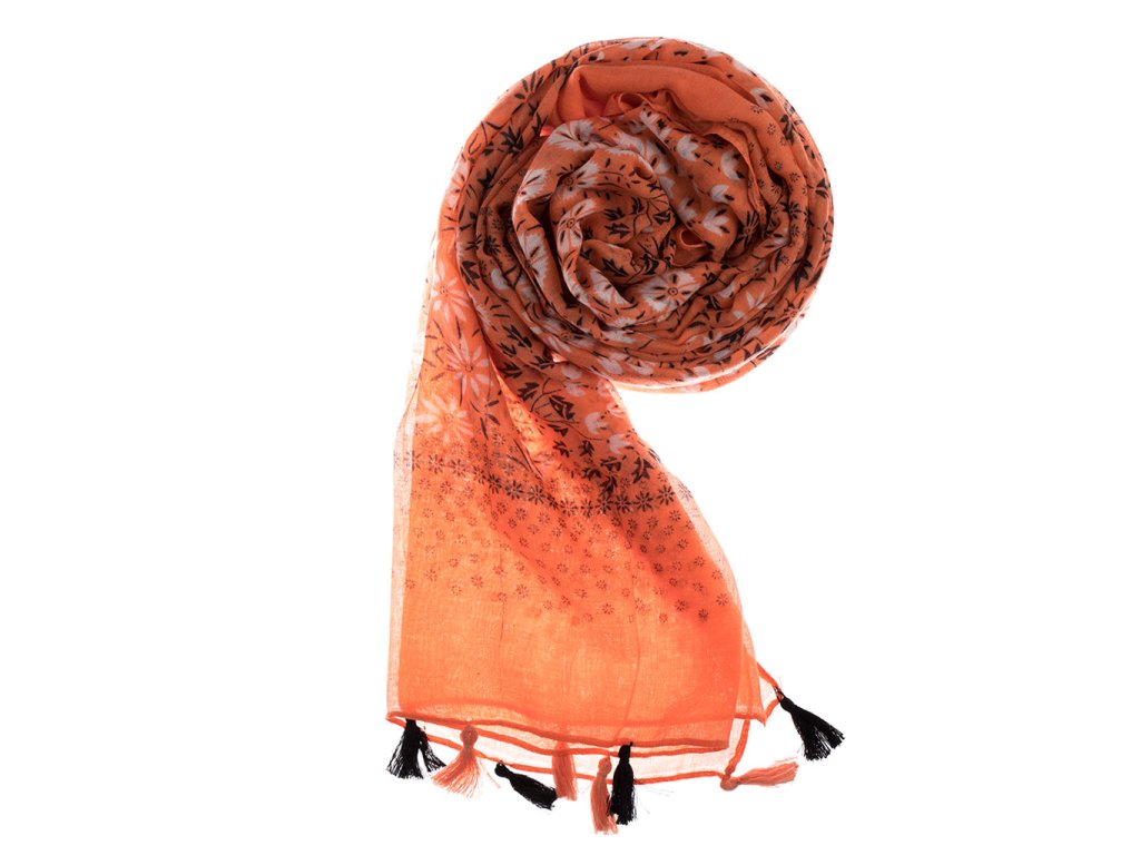 Dámský šátek 90 x 200 cm květinky - oranžový