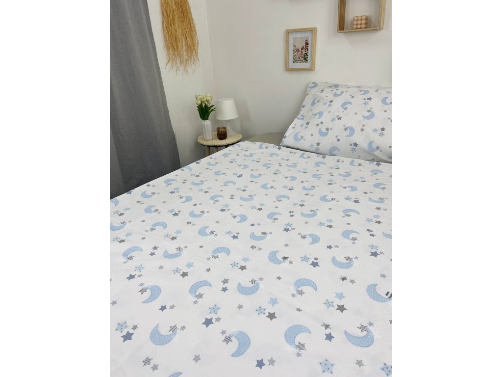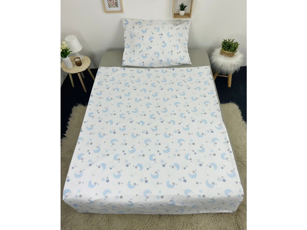 Dětské bavlněné povlečení, jednolůžko - Modrý Měsíček a hvězdičky