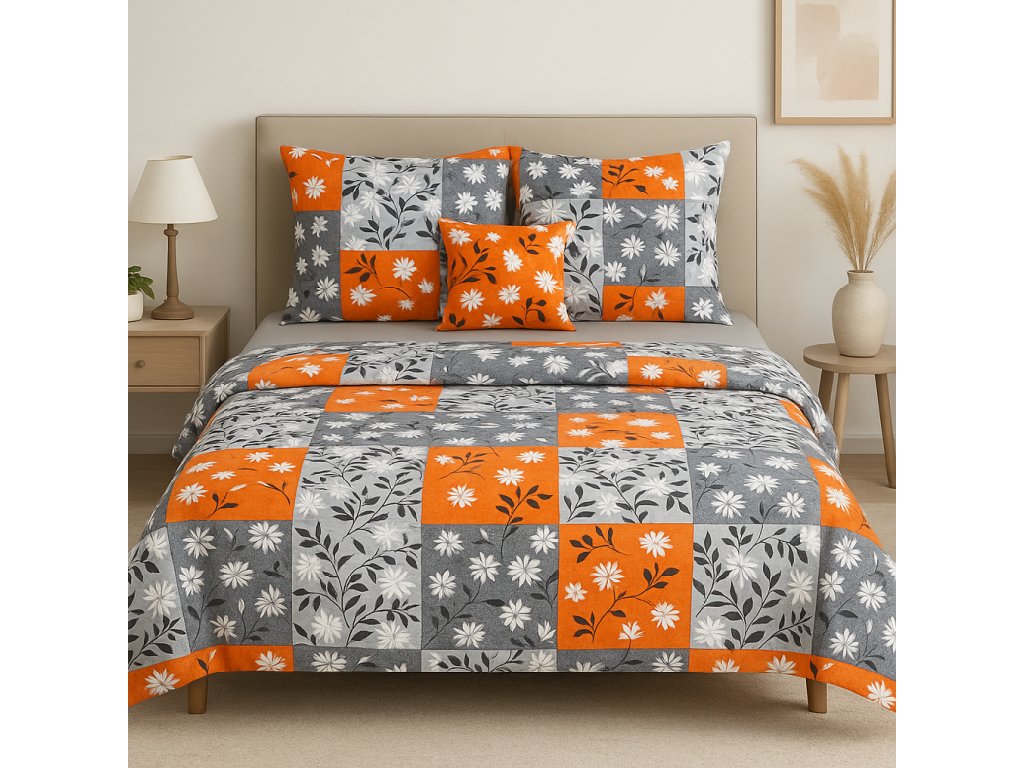 Francouzské bavlněné povlečení - Oranžovo šedé s květy