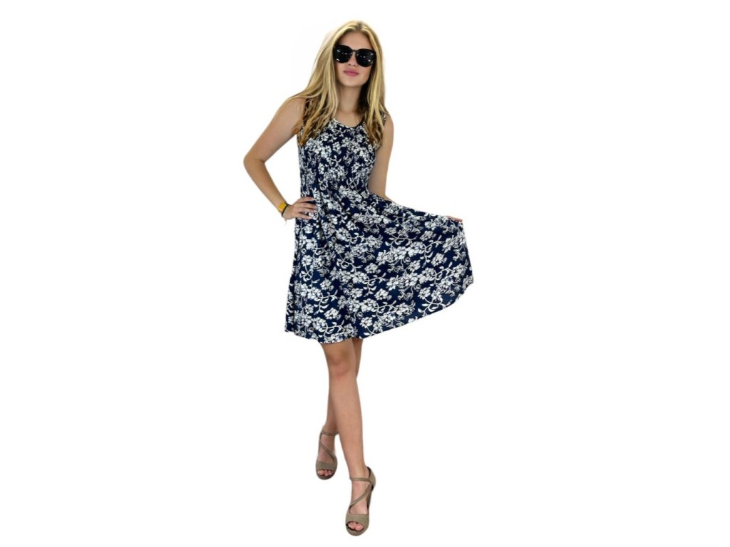Letní šaty s kulatým výstřihem 2321268 - modré s bÍlými kvítky