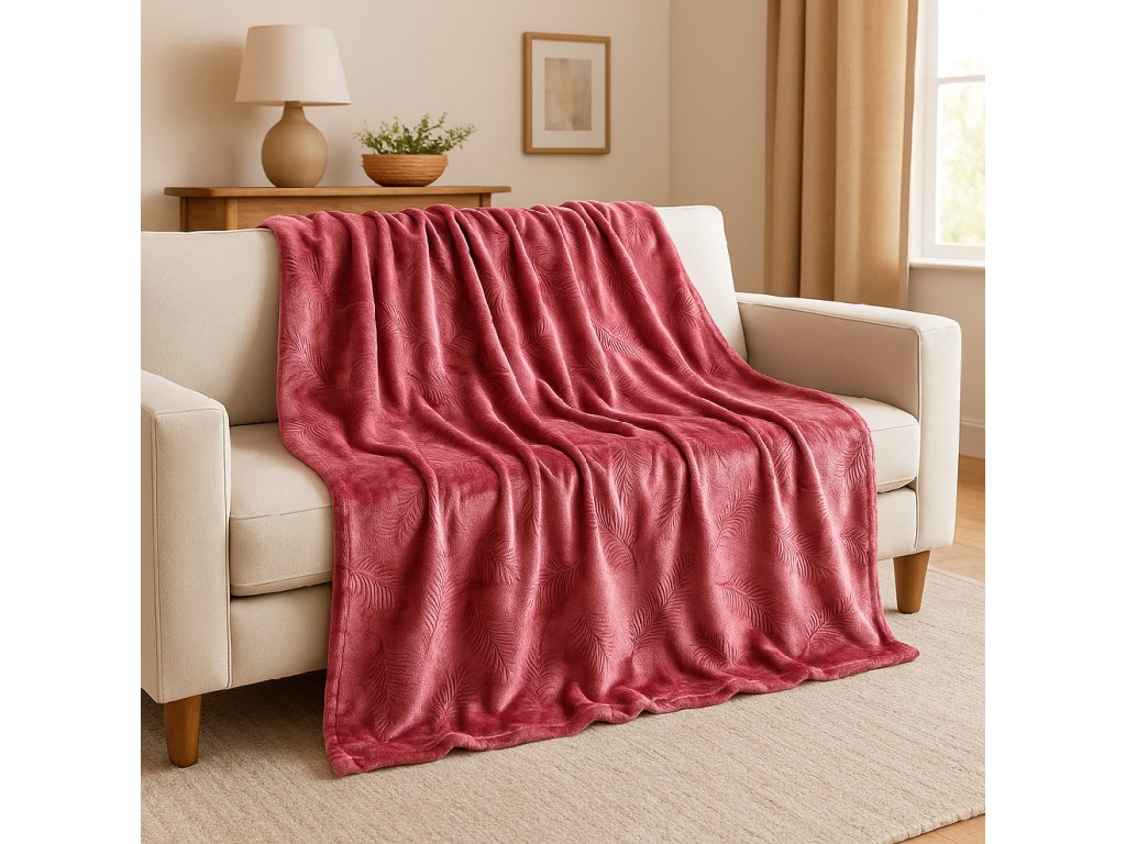 Mikroplyšová deka 150 x 220 cm A feather Růžová