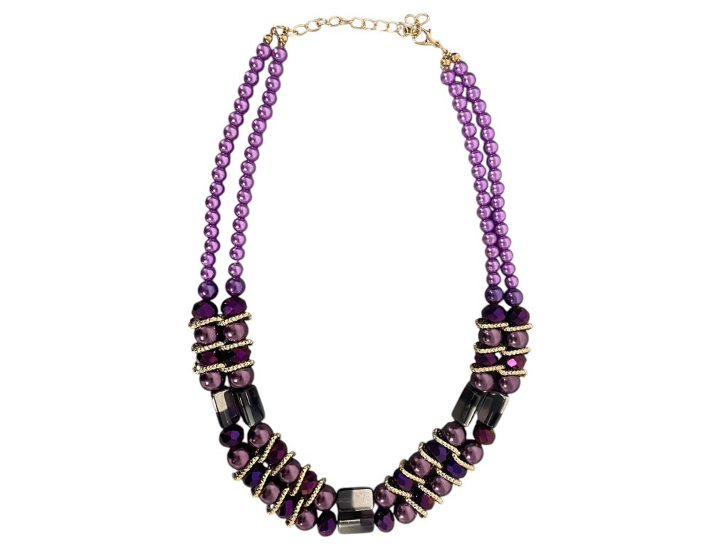 Náhrdelník ze skleněných a plastových korálků - fialový