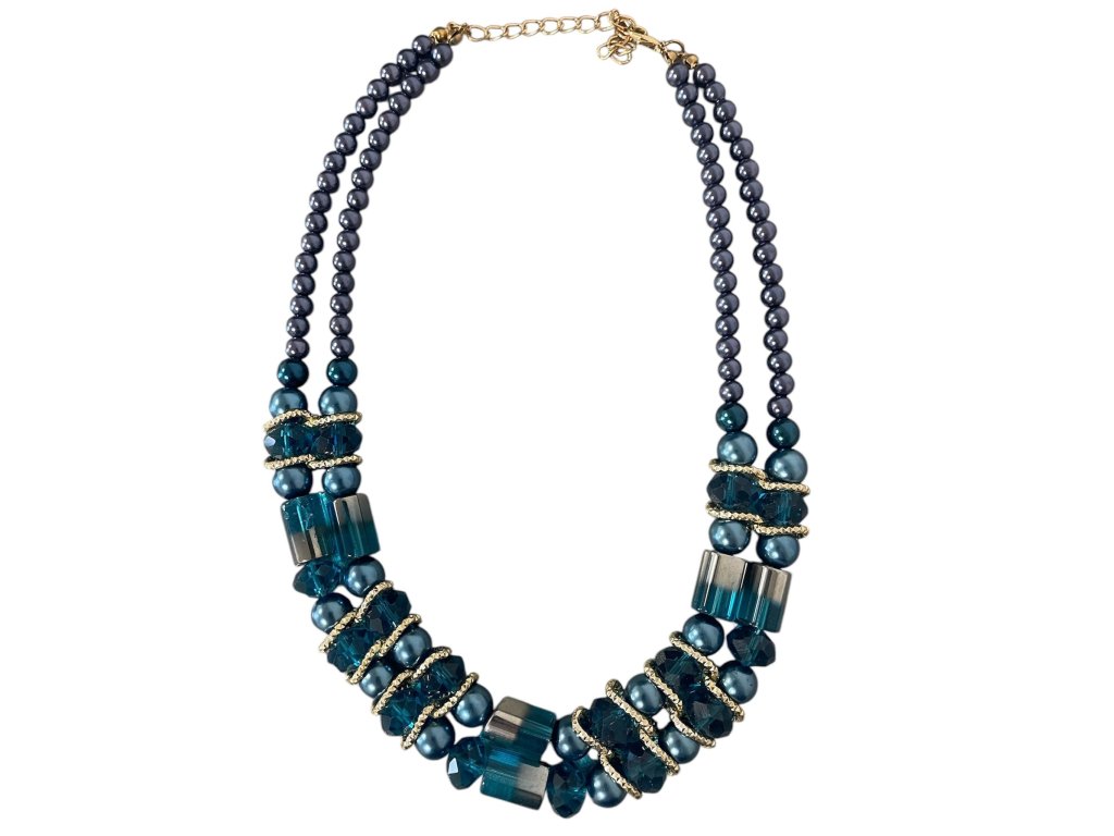 Náhrdelník ze skleněných a plastových korálků - modrý