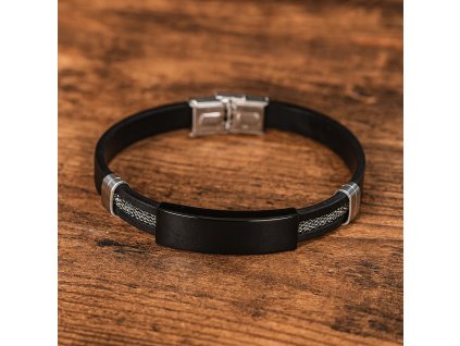 Stylový pánský náramek na první pohled vás zaujme designové provedení pásky černé barvy spona ocel zapínání formou patentu