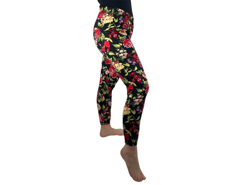 NOVINKA- Dámské dlouhé legíny červené růže