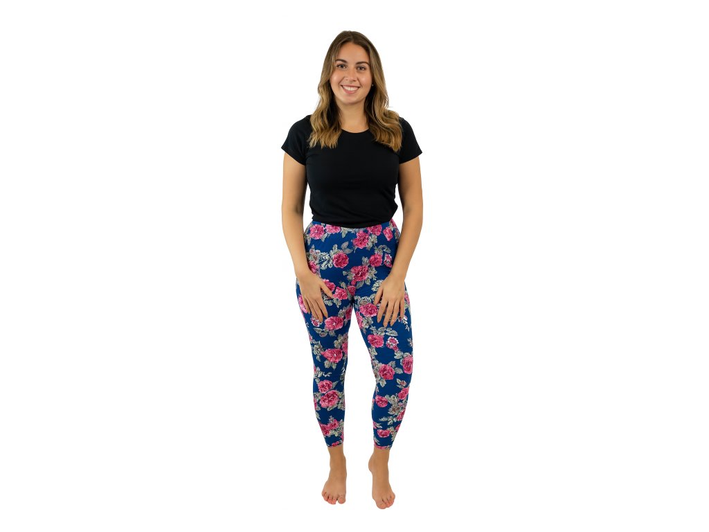 NOVINKA- Dámské dlouhé legíny - Růžičky
