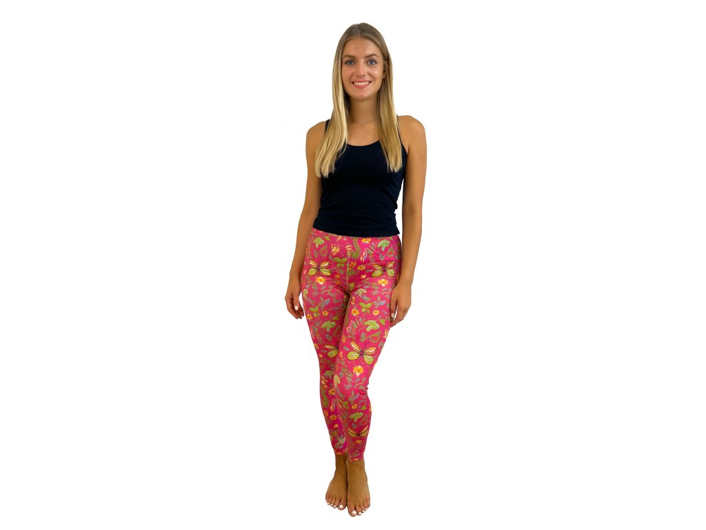 NOVINKA- Dámské dlouhé legíny růžové s motýlkem a kvítím