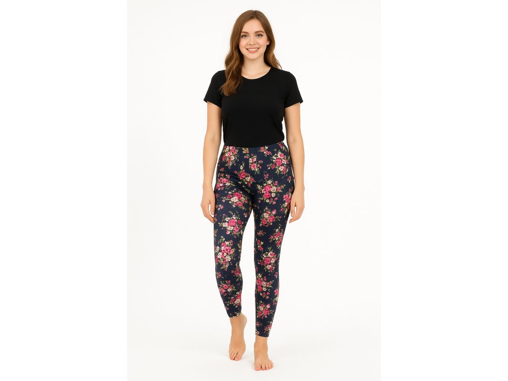NOVINKA- Dámské dlouhé legíny s růžovými kvítky