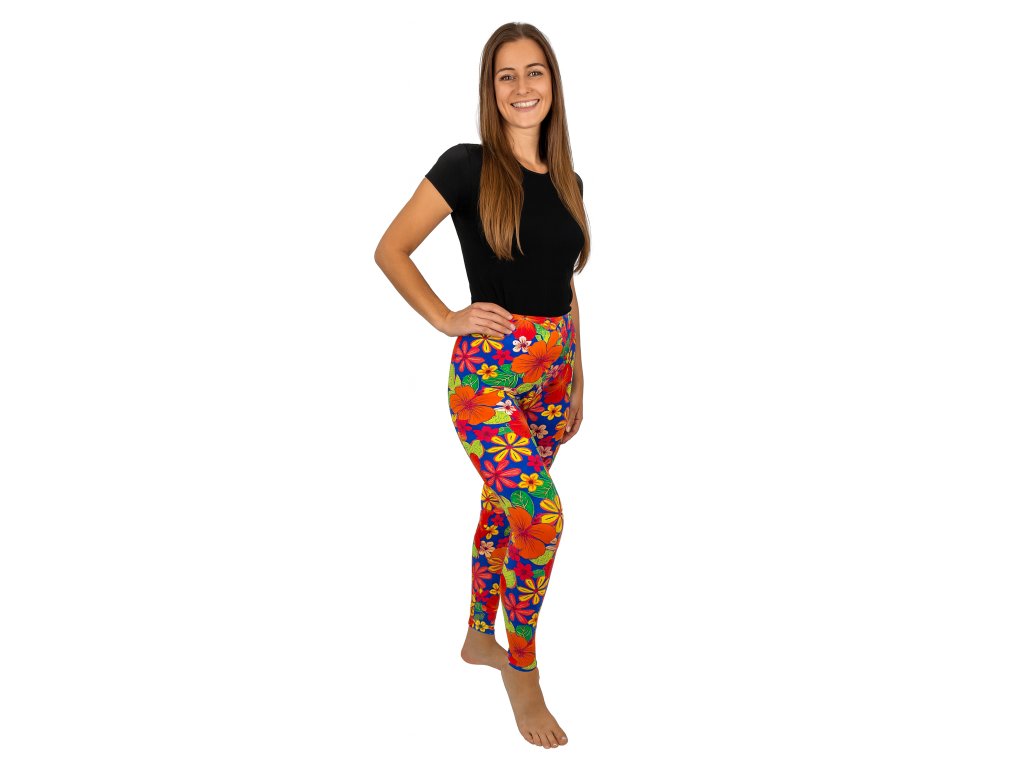 NOVINKA- Dámské dlouhé legíny se vzorem- Oranžové květy