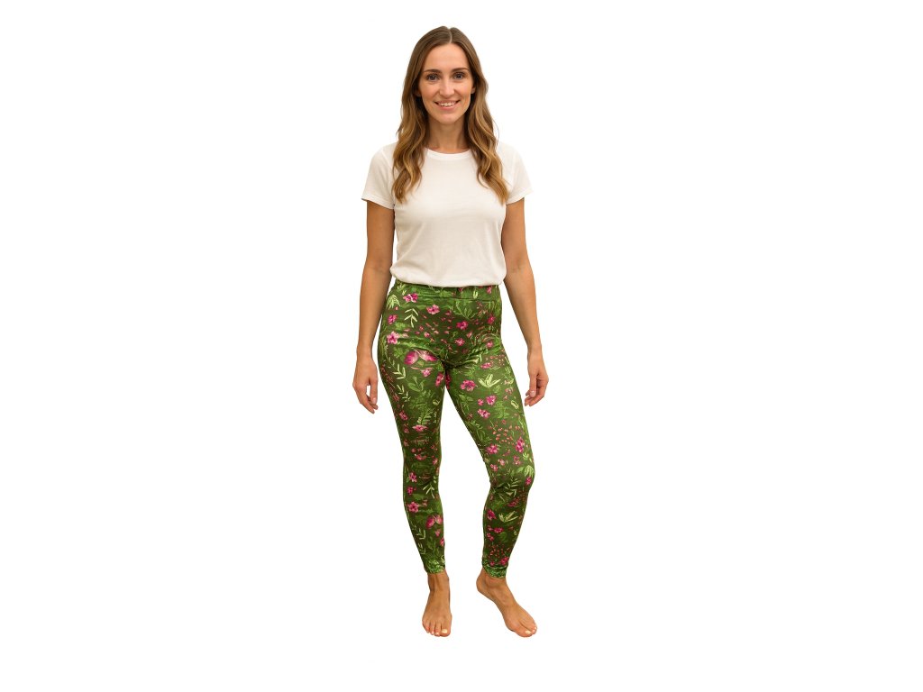 NOVINKA- Dámské dlouhé legíny zelené s motýlkem a kvítím
