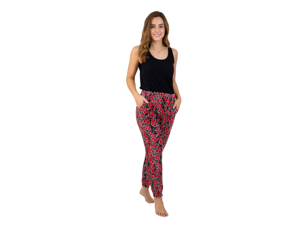 NOVINKA- Dámské kalhoty typ legíny černé s červenými květy