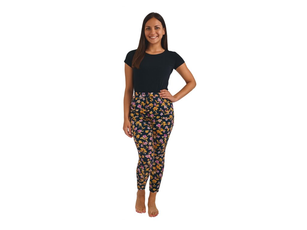 NOVINKA- Dámské legíny černé s drobnými kvítky