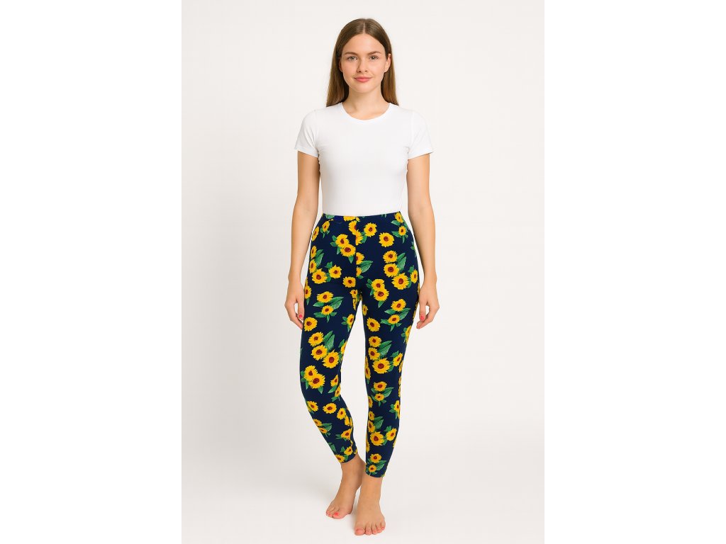 NOVINKA- Dámské legíny modré se žlutými květy