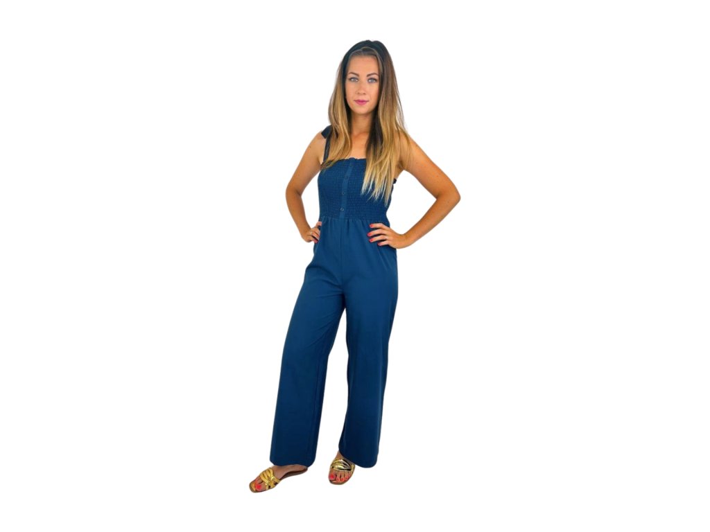 NOVINKA-Dlouhý letní overal na ramínka - modrý