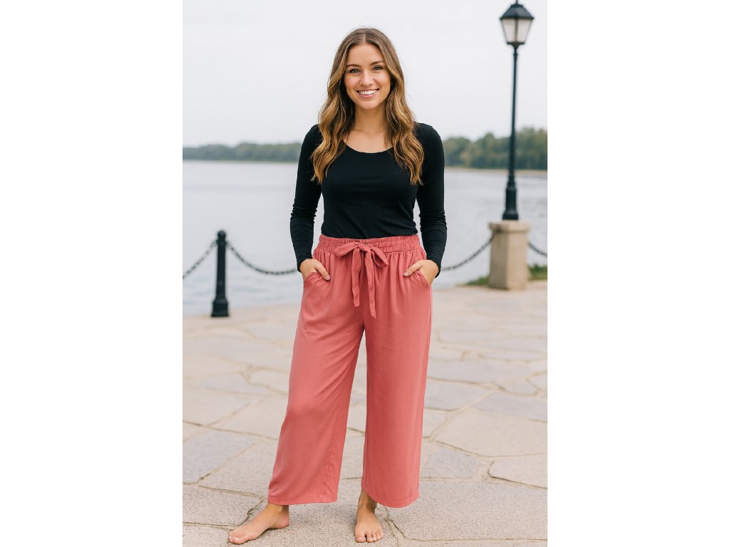 NOVINKA- Elegantní kalhoty s širokými nohavicemi - růžové