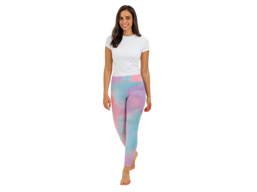 NOVINKA-Jógové Legíny S Vysokým Pasem A Zdůrazňujícím Efektem, S Texturou Bublin - mix barev