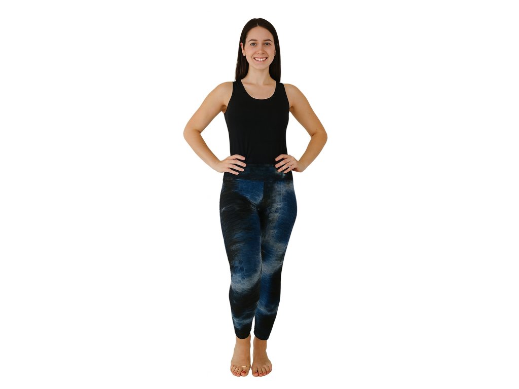NOVINKA-Jógové Legíny S Vysokým Pasem A Zdůrazňujícím Efektem, S Texturou Bublin - modro-černé