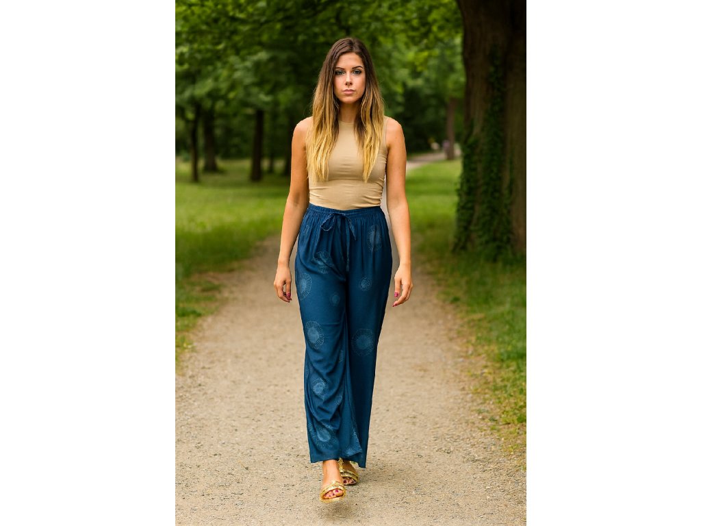 NOVINKA- Květované volné kalhoty - tmavě modré