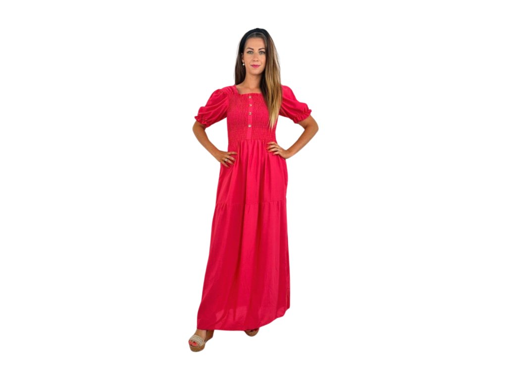 NOVINKA-Letní šaty s žabičkováním a rukávky - růžové