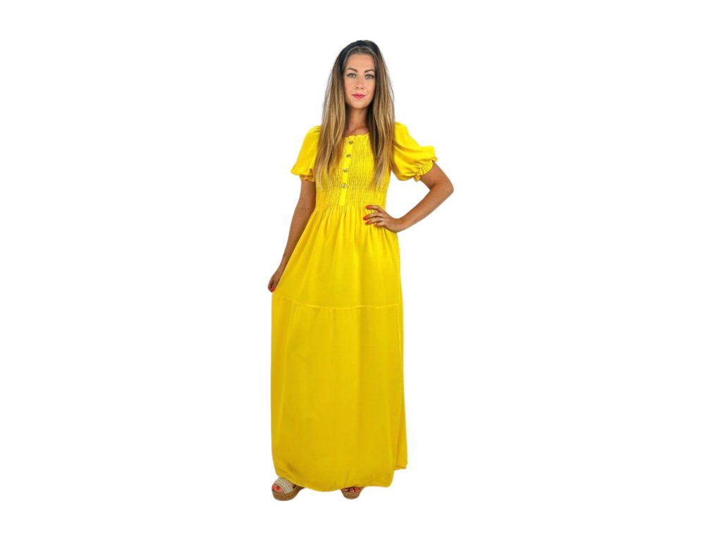 NOVINKA-Letní šaty s žabičkováním a rukávky - žluté