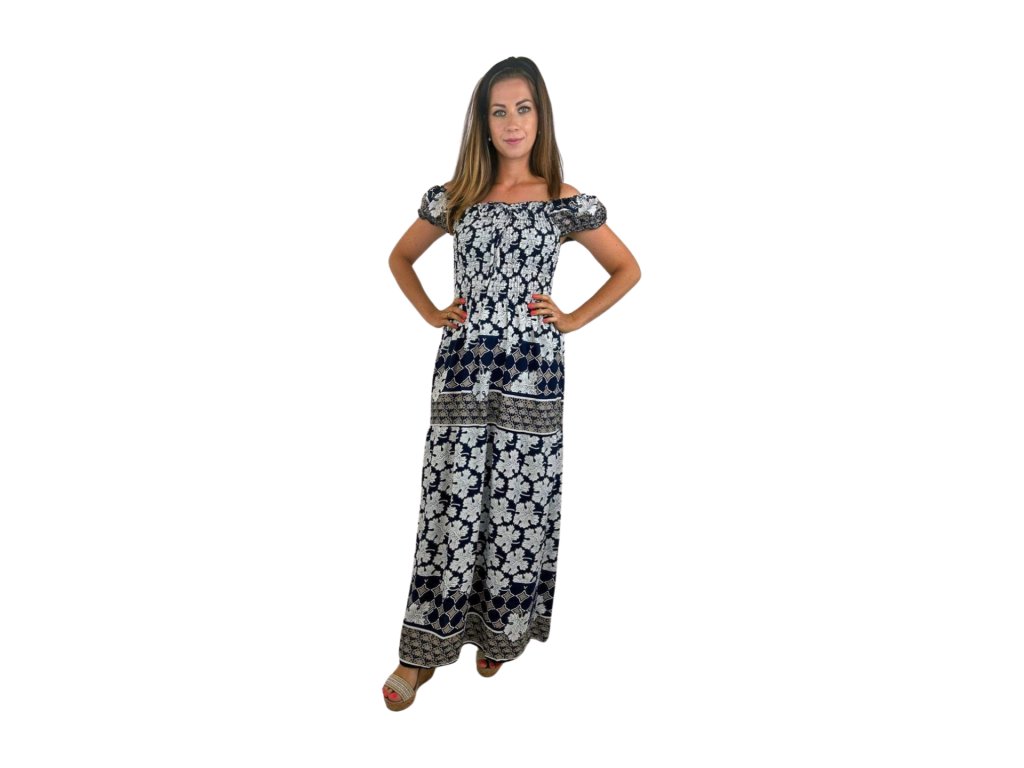 NOVINKA-Letní šaty s žabičkováním - bílé lístečky - tm.modré